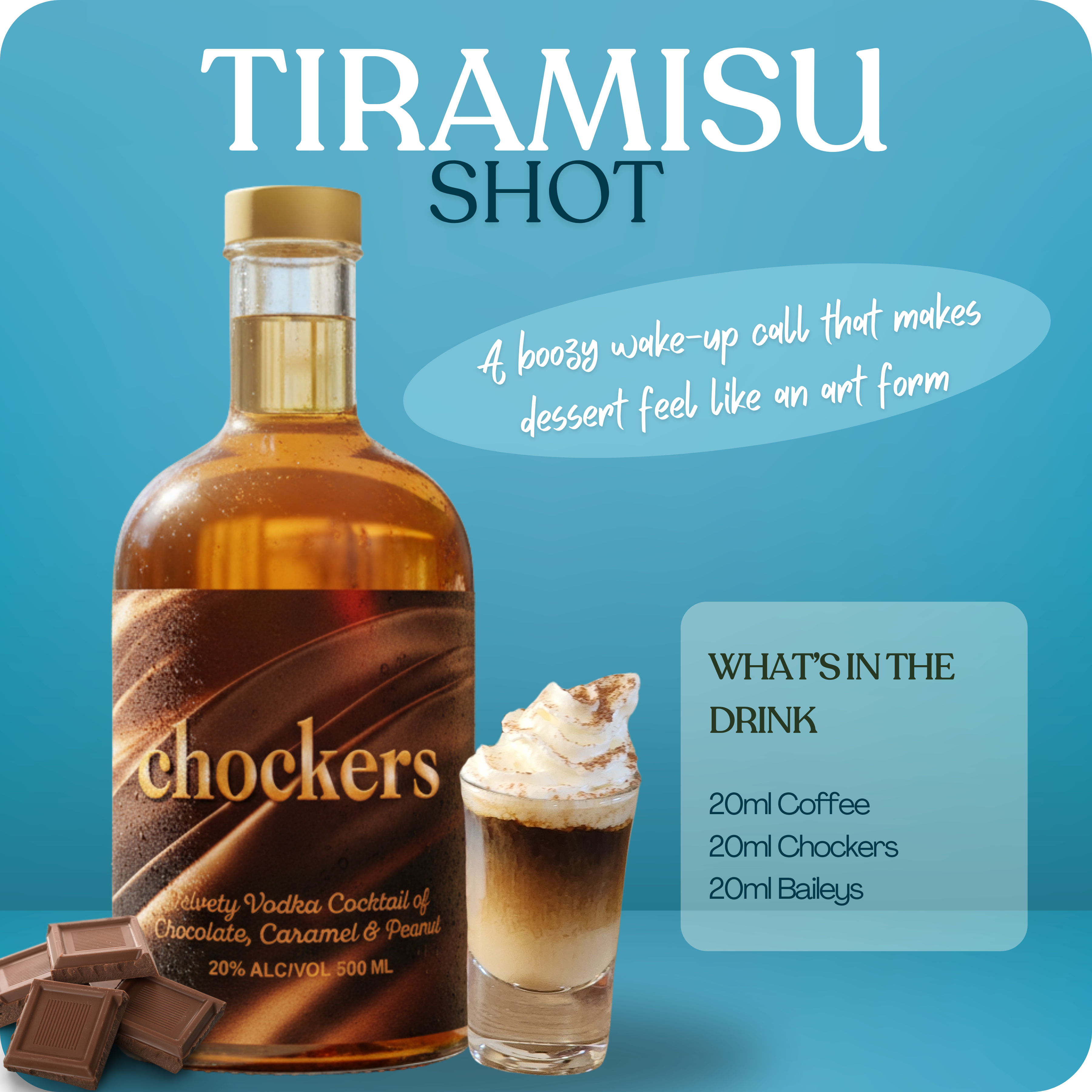 10 times more delicious and with no dairy, lactose or fat, it ticks all the boxes for the perfect Irish Coffee, afternoon tipple, pre-dinner aperitif, post dinner dessert drink and any other occasion you can think of where a liquified chocolate bar drink would make it better.