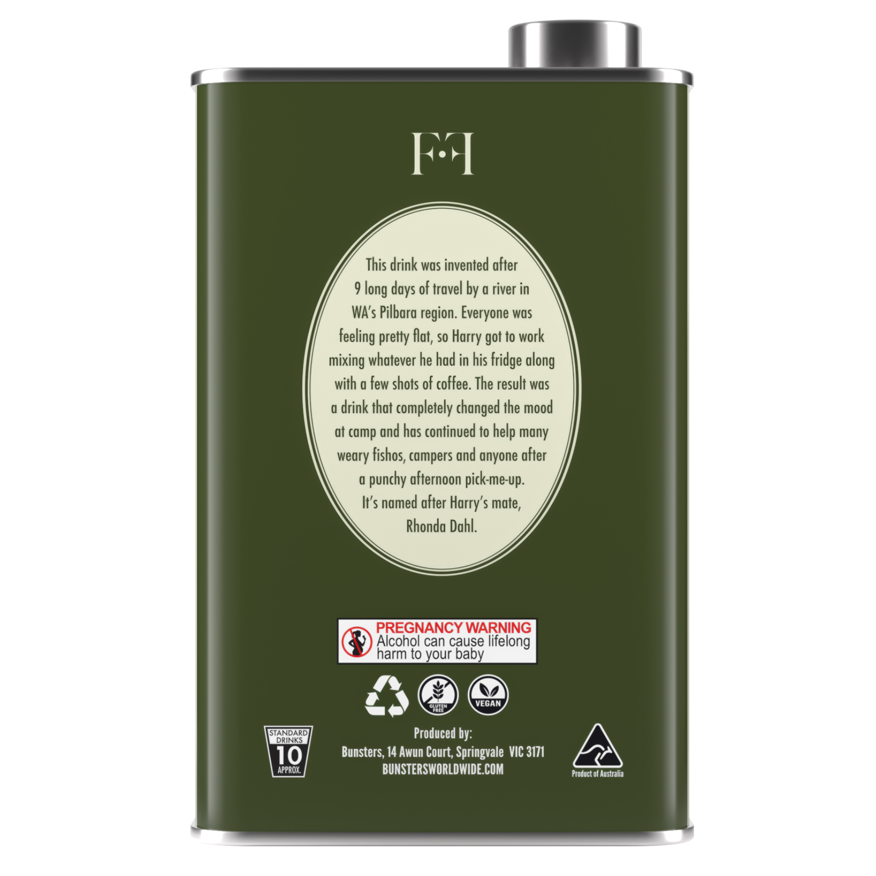 Rhonda was invented after 9 long days of travel by a river in WA’s Pilbara region. Everyone was feeling pretty flat, so Harry got to work mixing whatever he had in his fridge along with a few shots of coffee. The result was a drink that completely changed the mood at camp and has continued to help many weary fishos, campers and anyone after a punchy afternoon pick-me-up.