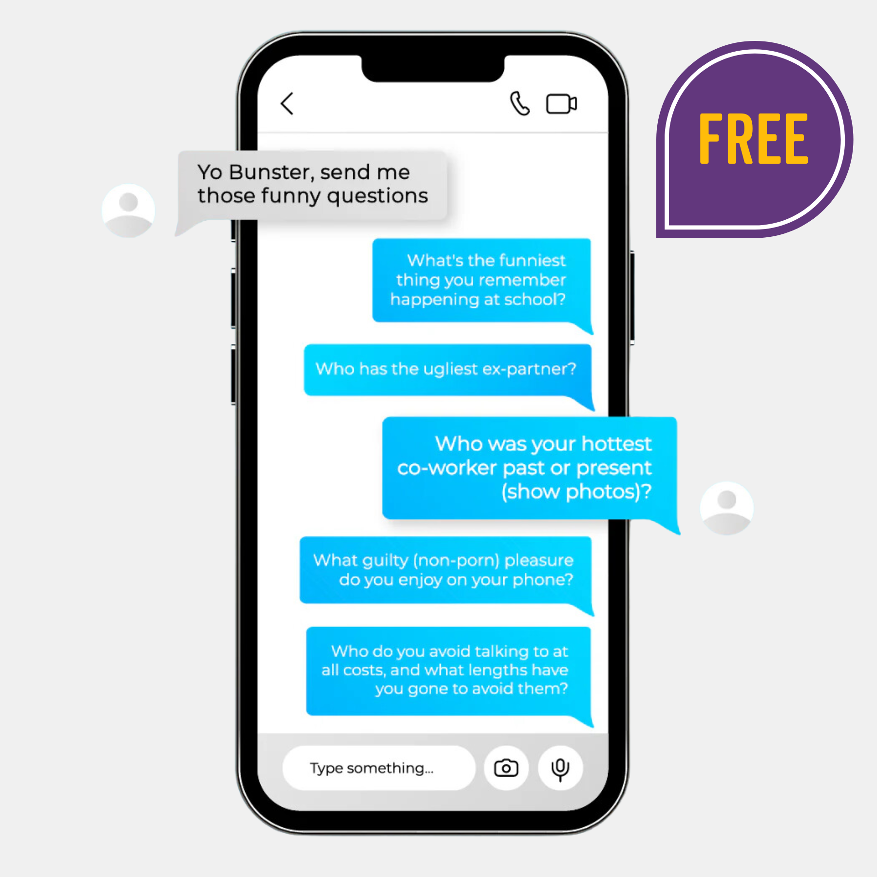 Our 'Chat Line' Conversation Starters will be texted to you. If you want 'Spicier' or 'Brutal' questions just text us back. We're standing by to crack you up.